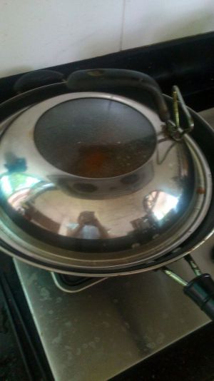 翻炒一下就盖上锅盖。觉得差不多了就把洋葱粒撒上,然后放椰浆。再煮一会就可以上锅了