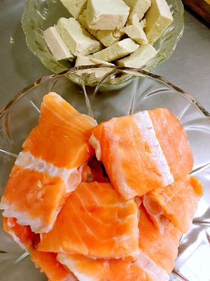 准备食材(鱼骨洗净切块,豆腐切小块适量)
