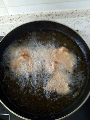 油继续加热,把肉在放里炸,上色捞出,炸二次,这样口感好,外酥里嫩