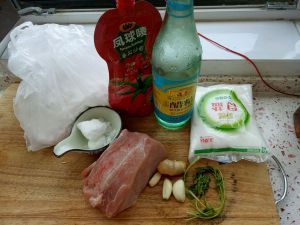 所以食材,肉,葱,姜,蒜瓣,盐,味精,糖,水,番茄酱,醋精,淀粉