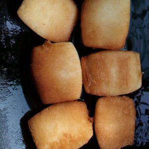 倒入油(千万别小气,油太少会烧焦)将两面煎至金黄色就完成。