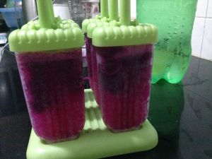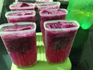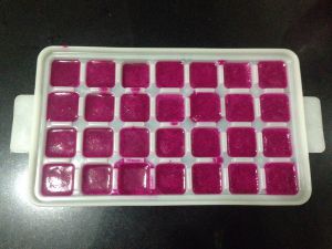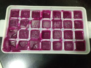 将果泥倒入冰格,放入冰箱冷冻5小时以上。