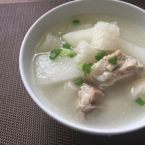 砂锅水烧开,放入排骨,加生姜,葱,大火煮沸后转中小火慢炖