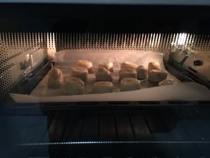 烤箱200度.10分钟,记得要预热。每个烤箱的温度都不一样,可以酌情加时间。烤到饼皮酥脆,泛微黄就可以了。