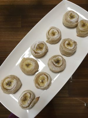 飞饼卷上香蕉(飞饼皮要化冻一会,饼皮要微微发软,不然卷的时候会麻烦一点)