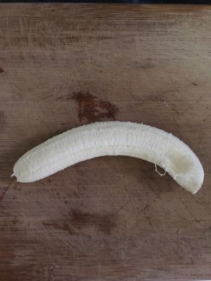 熟一点的香蕉一根,去皮备用,香蕉一定要挑熟的,那样比较甜,不然烤出来口感带酸涩,我这个不够熟