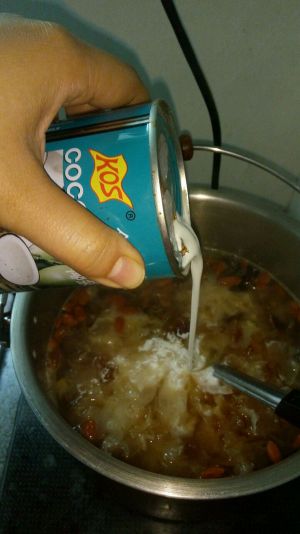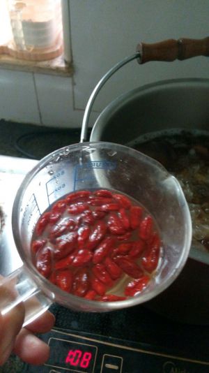待冰糖煮溶了,再加入枸杞(枸杞煮久了,会流失本身的维生素)煮开就可以