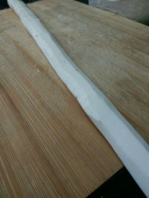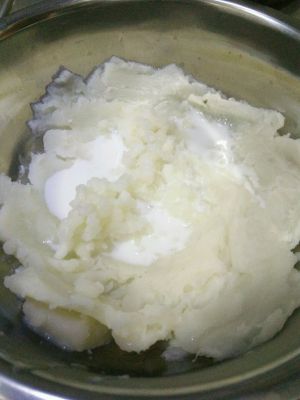 山药蒸到可以用筷子轻松的戳进去就是熟了,然后取出压成泥,为了口感混一些牛奶进去,不能太多,不然就成山药糊了
