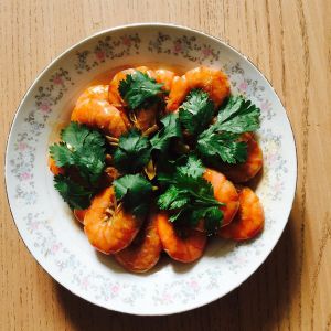 直至虾炒成红色,扁一下虾头,使虾油流出