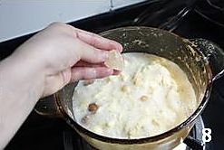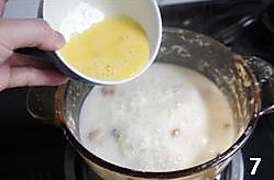 久炖过后腐竹会被炖化,之后这时将打散的鸡蛋倒入。