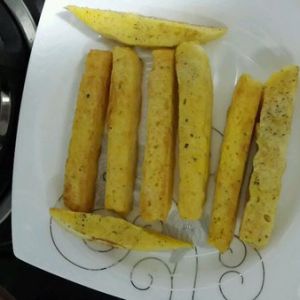 馒头条均匀裹上蛋液。下热锅煎。一定要是不粘锅。卖像才好看