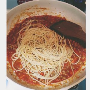 意大利面热水煮软,然后捞出放进冷水(或冰水)中,静置,边儿呆着等待
