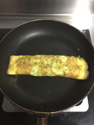 待周边蛋液凝固后卷起在煎半分钟(最小火)
