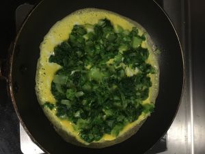 鸡蛋稍凝固后放入小白菜,根据个人口味撒上适量黑胡椒和盐调味!