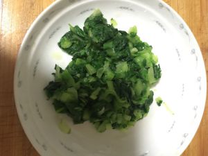 小白菜过水绰5秒钟过凉水后切碎稍微用手攥一下去去水分!
