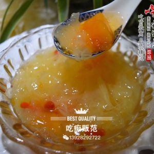 这是银耳汤已经出胶,汤汁开始变粘稠时放入枸杞,再煮2分钟即可出锅!