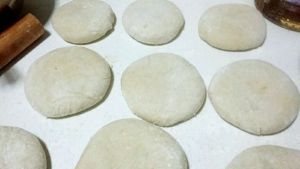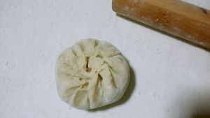 擀成圆片,包入馅料
