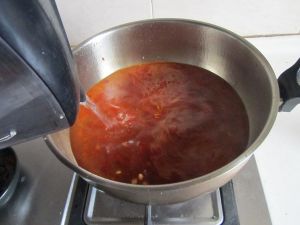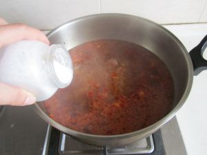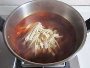 煸炒出香味后加入适量的水大火煮开后再炖煮两、三分钟;