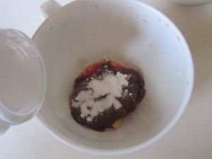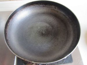 油微微冒烟时关火,将热油浇淋在调味料表面上;