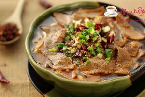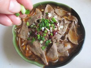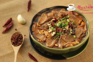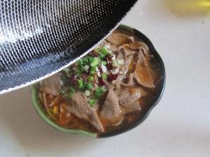 听着嗤嗤声响, 这充满麻辣诱惑的“水煮猪肝”就完成了。