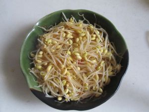 将煮好的千张丝平铺在碗底,再码上豆芽菜;