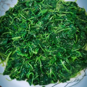 油热了放草头快速翻炒,放一点点花雕酒盐和鸡精就可以出锅啦,非常简单…
