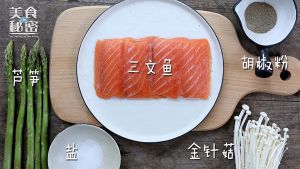 盛盘,可以将芦笋在淡盐水中焯熟,作为配菜。