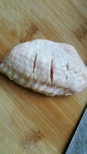 将鸡翅正反面各3刀