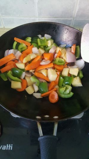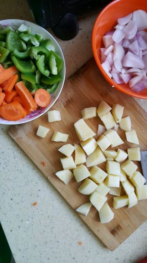 将土豆胡萝卜菜椒洋葱洗好削皮切好
