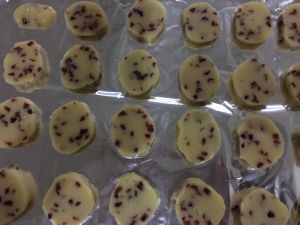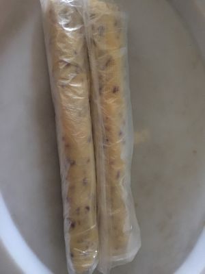 最后装进保鲜膜弄成条状,放冰箱里冷藏,大概30分钟到一小时后拿出来切块,如果觉得太软不好切就再放急冻10分钟就好