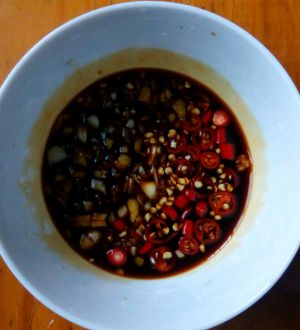 蒜和辣椒切碎,加入酱油,香香的酱,很简单。