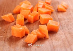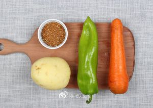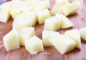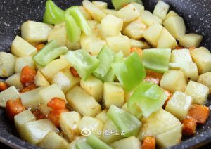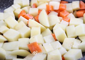 热锅放油,放入土豆和胡萝卜,大火转小火