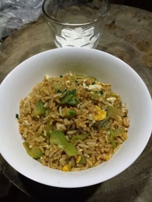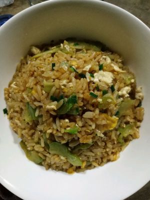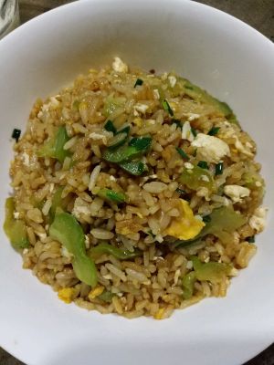 当当当,苦瓜炒饭出炉,太香了,因为我比较嗜吃咸,所以酱油就放多点