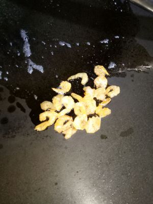 锅里放少量猪油,炒香虾米