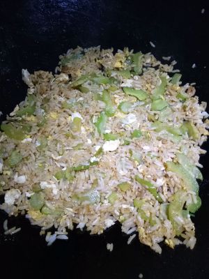 苦瓜炒完就直接下鸡蛋,这一步就忘记拍照了,只拍到放米饭下去炒