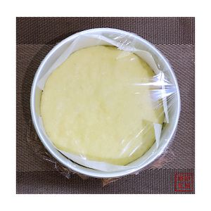 将揉制好的面团放入垫好硅油纸的面包模具里,压平整,盖上保鲜膜,常温放置一个晚上发酵。准备工作基本完成了哈,下一步将是第二天早上开始了哦。