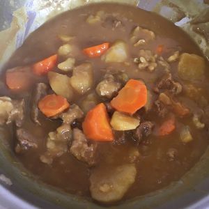 因为着急出门我炖了两个小时,牛肉还不是那么烂,但是也差不多了。喜欢吃软烂口感的可根据喜好延长时间。出锅前转大火放入咖喱块。