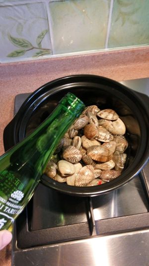 加入清酒,可以多倒点,酒精会蒸发掉,留下的汤汁可以拌饭,很鲜美