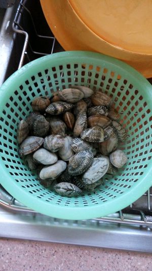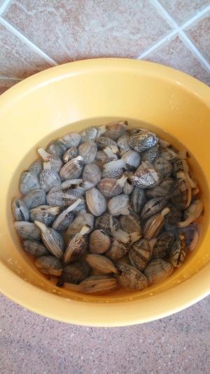 用小牙刷仔细刷洗每一个蛤蜊,沥水