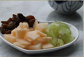 葡萄去皮切片 哈密瓜切小片