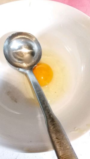 放到煮丸子的锅里,左手用勺子在锅里画圈,右手开始慢慢倒,就会有细腻的蛋花