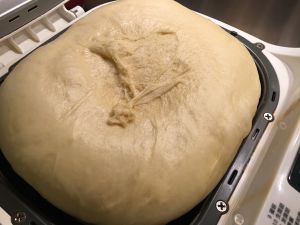 此时放入黄油用机器继续揉至面团扩展阶段(大概25分钟)