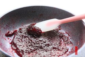 果汁放在不粘锅中炒干,这个过程很漫长,但要有耐心。