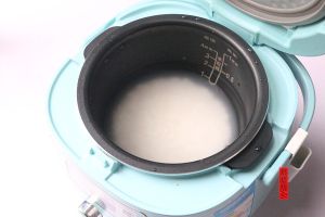 大米和糯米淘洗一遍后放入电饭锅,加水至高出米一节食指的高度。按下“开始键”煮饭。