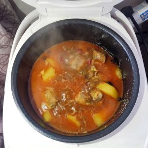 烧的差不多了,可以用电饭煲焖煮半小时。