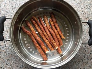 上火蒸熟。