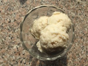 用冰激凌勺挖出打好的山药泥,放到小碗里。