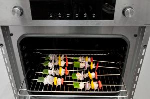烘焙:烤箱预热完成的提示音出现后,快速将烤架放入烤箱中层,关上烤箱门,在烤到烤箱所剩时间为5分钟时,按暂停键,小心取出烤架,将海鲜串两面均匀刷上一层海鲜酱,重新将烤架放回烤箱,再按暂停键,让烤箱继续工作,待烤箱工作结束后取出即可。