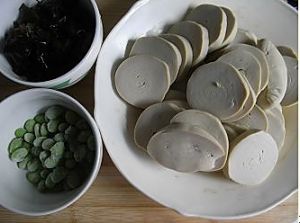 食材:素鸡,黑木耳,毛豆。黑木耳泡发洗净。