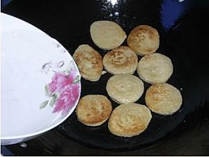 倒出多余油,加一碗凉水。(一定要凉水哦)